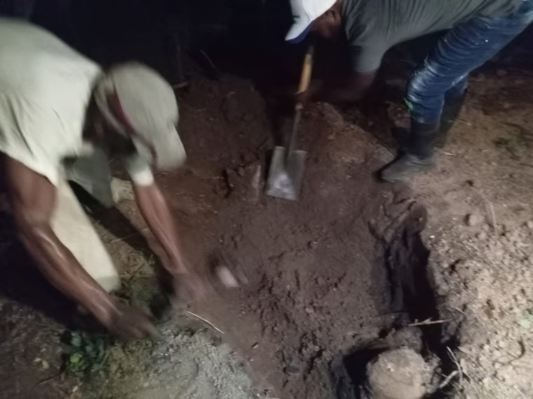 Al lugar se presentaron miembros de la Dirección Central de Investigación (DICRIM) y el Ministerio Público, quienes procedieron a desenterrar el cuerpo.