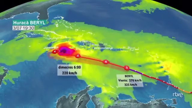 Beryl se fortaleció el lunes a categoría 5 en el Atlántico, la más temprana en el año de la que se tiene constancia, mientras atraviesa el Caribe tras devastar las islas de Barlovento, donde ha muerto al menos una persona.