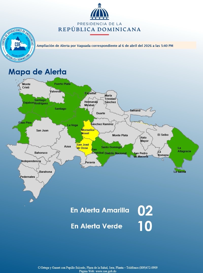 Santo Domingo Este: aumentos nubosos en las primeras horas de la mañana con chubascos ocasionales, tronadas distanciadas y ráfagas de viento. En la tarde chubascos aislados y pasajeros.