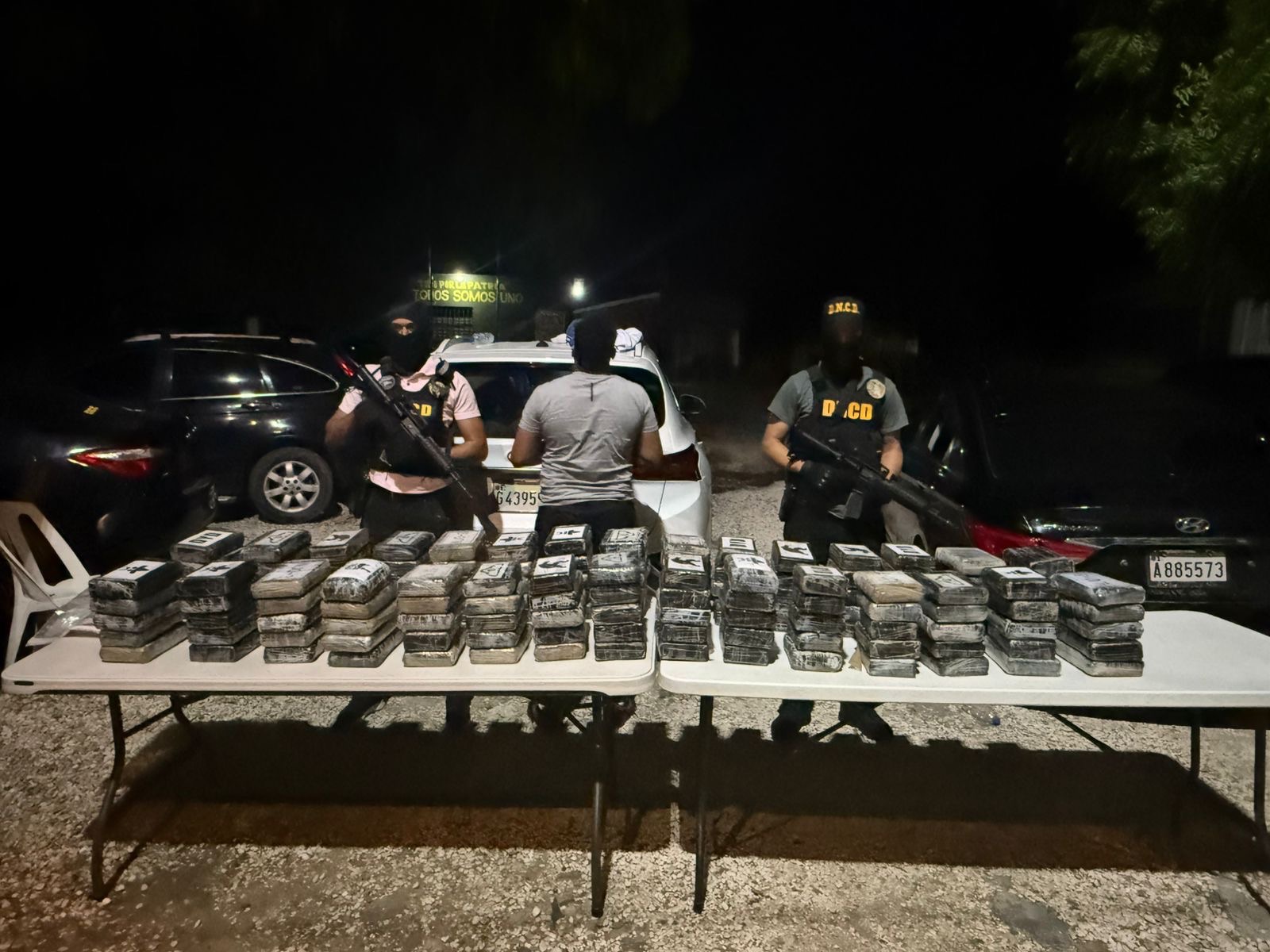 Los agentes y militares, tras recibir informes de inteligencia, montaron un amplio operativo de interdicción, para atrapar a varios individuos que se movilizaban en dos vehículos, desde la parte sur del país a la capital, con una indeterminada cantidad de presuntas sustancias narcóticas.