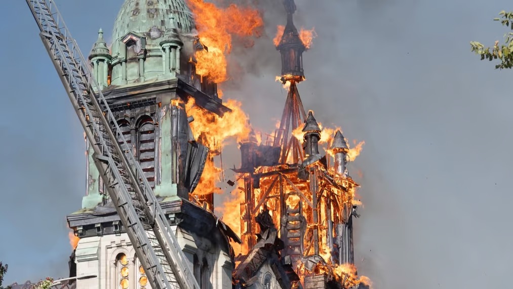 Incendio arrasa con iglesia histórica en Trois-Rivières, Canadá