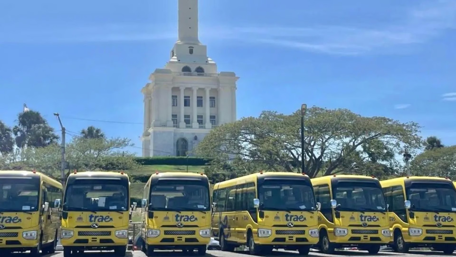 Este domingo, la vicepresidenta de la República, Raquel Peña, junto con el ministro de Educación, Ángel Hernández, presidió el acto de entrega de 150 autobuses eléctricos en Santiago, como parte del Sistema Nacional de Transporte Estudiantil (TRAE).