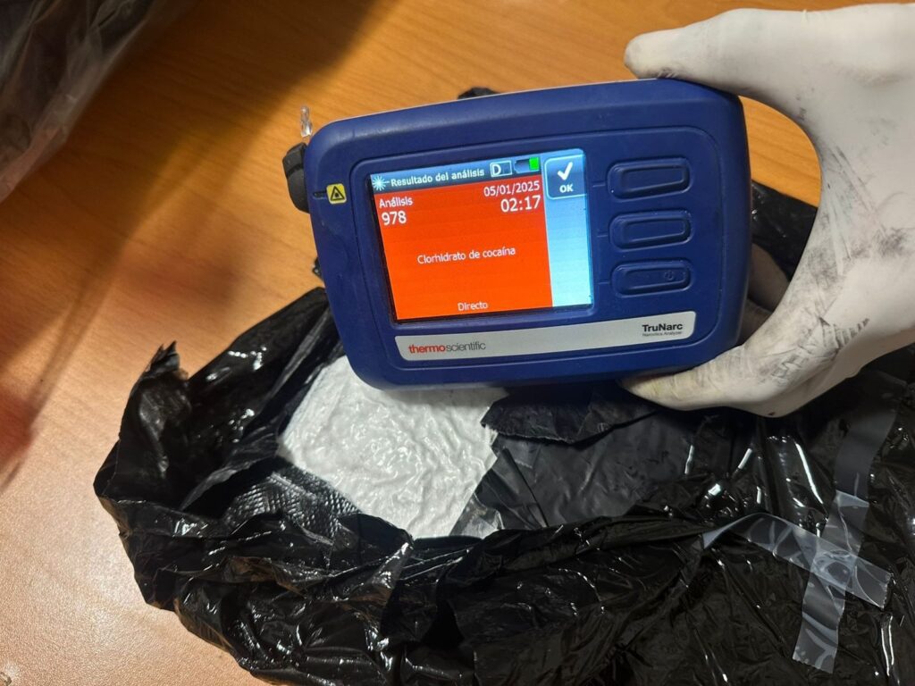 Los equipos actuantes, en su misión de seguir enfrentando el narcotráfico, intervinieron el equipaje de una mujer que viajaria a Madrid, España, y tras someterlo a una revisión a traves de las maquinas de rayos X, se observaron imágenes sospechosas.