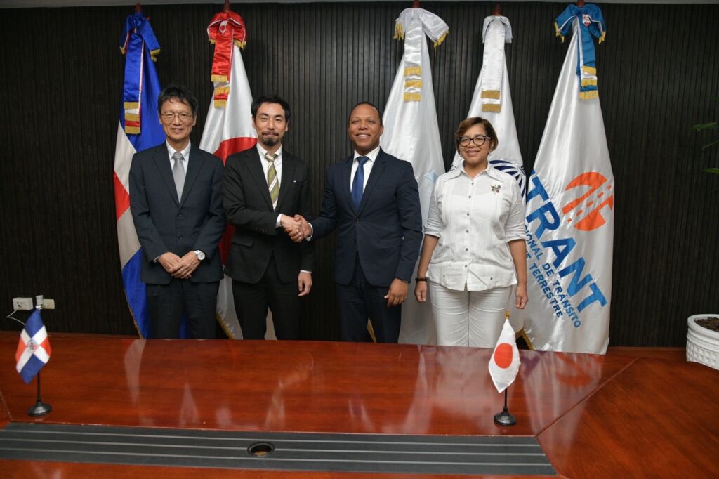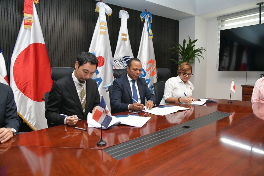 La firma fue rubricada en la sede del Intrant entre el representante de la JICA, Sakaguchi Kota, y el nuevo director de Intrant, Milton Morrison, con la presencia del Ministerio de Economía, Planificación y Desarrollo como testigo firmante, en la persona de la viceministra Olaya Dotel; y del embajador de Japón en la República Dominicana, Takagi Masahiro.