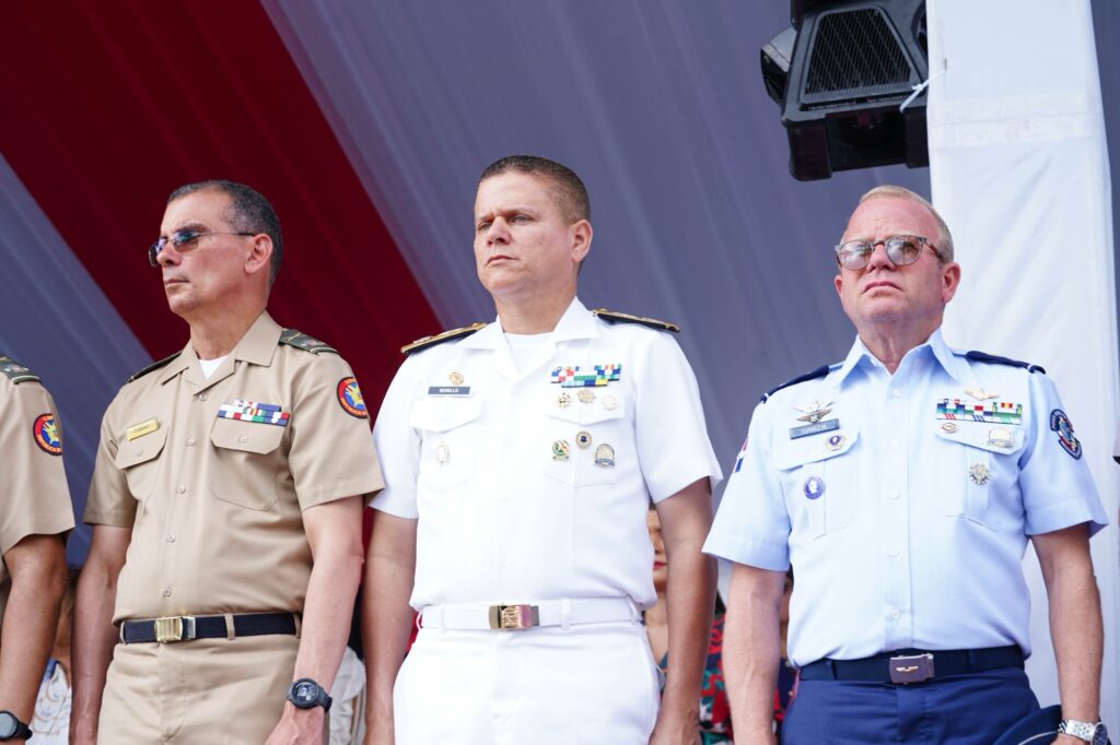 El acto, cargado de profundo patriotismo, contó también con la presencia del Estado Mayor General de las Fuerzas Armadas, entre ellos el mayor general piloto Floreal Suárez Martínez, FARD, comandante general de la Fuerza Aérea de República Dominicana, acompañado de su esposa, la señora María Henríquez de Suárez, presidenta de la Asociación de Esposas de Oficiales de la Fuerza Aérea de República Dominicana (AEOFARD). Asimismo, estuvo presente el director general de la Policía Nacional.