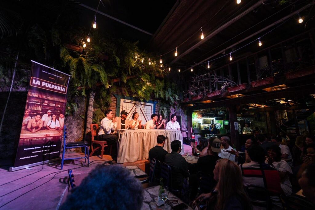 La pulpería” es un trabajo muy nuestro que apuesta a la juventud, a la formación, y al arrojo; y busca contar muchas de esas historias que está reclamando la escena dominicana. Es un ejercicio de sinceridad y de memoria, una mirada nostálgica que nos habla de temas no superados en nuestra sociedad: La ambición, la traición, los sueños truncados de los que ponen su mirada más allá del mar. Los que regresan para su mal y el de todos. La violencia, el deterioro de las relaciones, la moral desdibujada por los intereses.