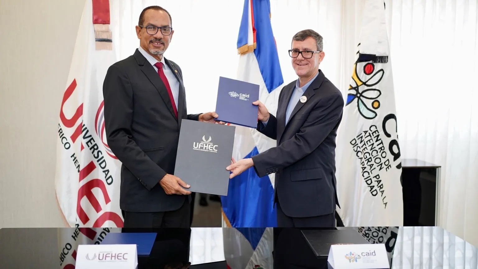 SANTO DOMINGO.- La Universidad Federico Henríquez y Carvajal (UFHEC) y el Centro de Atención Integral para la Discapacidad (CAID) firmaron un acuerdo de colaboración, con la finalidad de crear nuevas carreras especializadas en terapias del habla, ocupacional y conductual en la sede universitaria de San Juan de la Maguana.