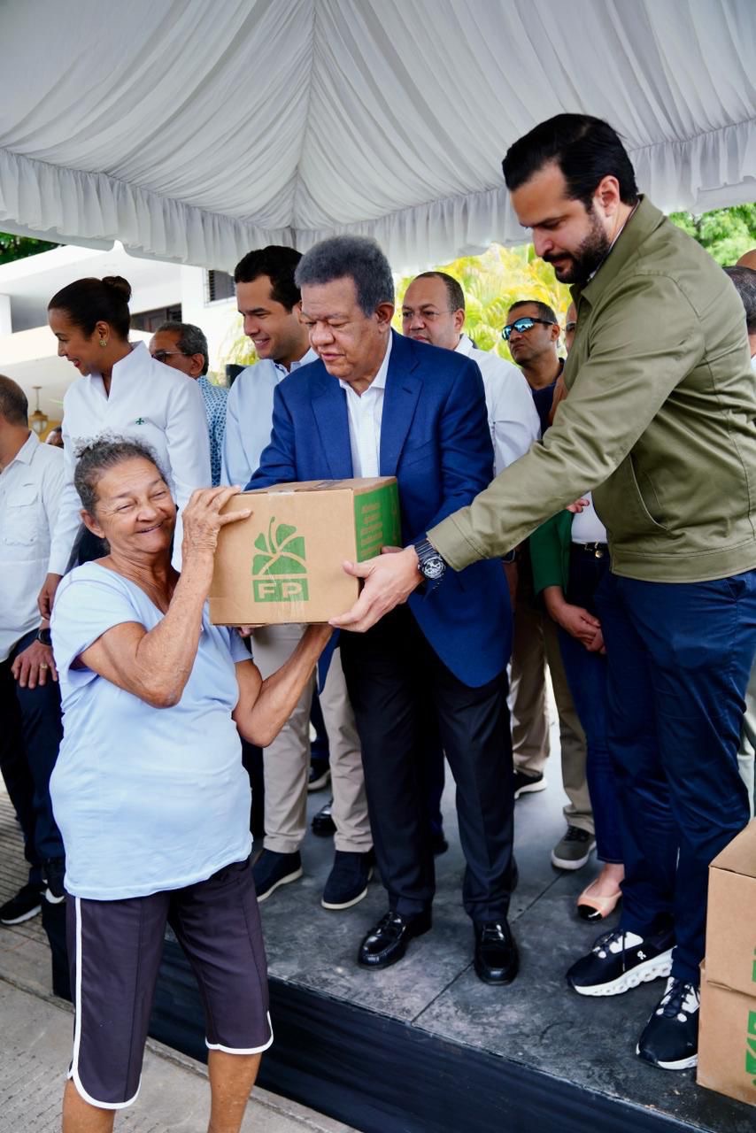 Santo Domingo.– El presidente del partido Fuerza del Pueblo y expresidente de la República, Leonel Fernández, continuó este martes su jornada de entrega de alimentos a sectores vulnerables con la distribución de raciones navideñas en la Casa del Pueblo Johnny Ventura, ubicada en el sector de Gascue, en el Distrito Nacional.