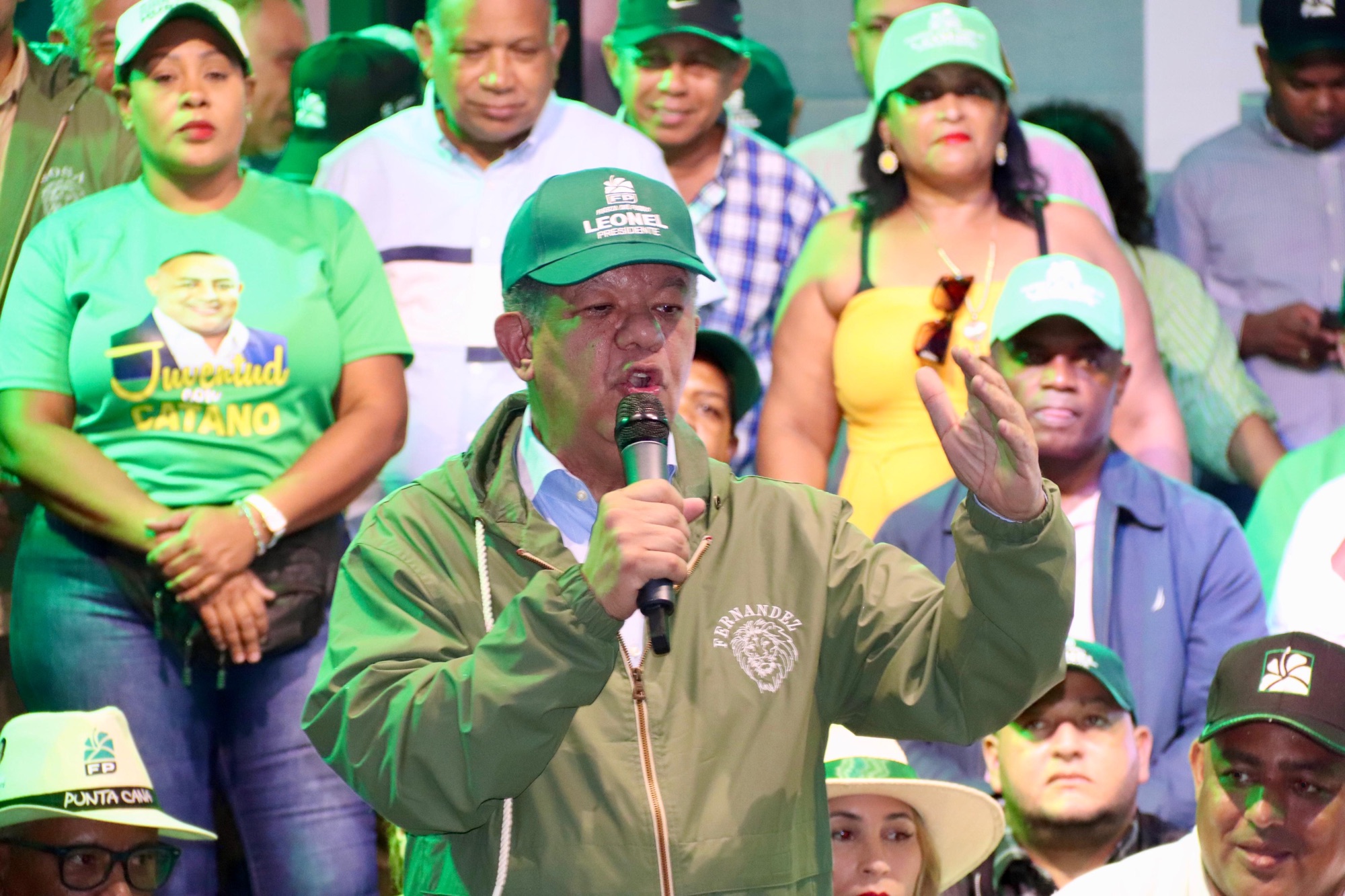 Leonel Fernández habló bajo un torrencial aguacero que caía en Monte Plata, el cual no impidió a la multitud permanecer en el lugar para escuchar el candidato presidencial del partido Fuerza del Pueblo (FP) y organizaciones aliadas, que acudió a respaldar al candidato a senador de esta provincia, Juan Hubieres, y los candidatos a diputados.