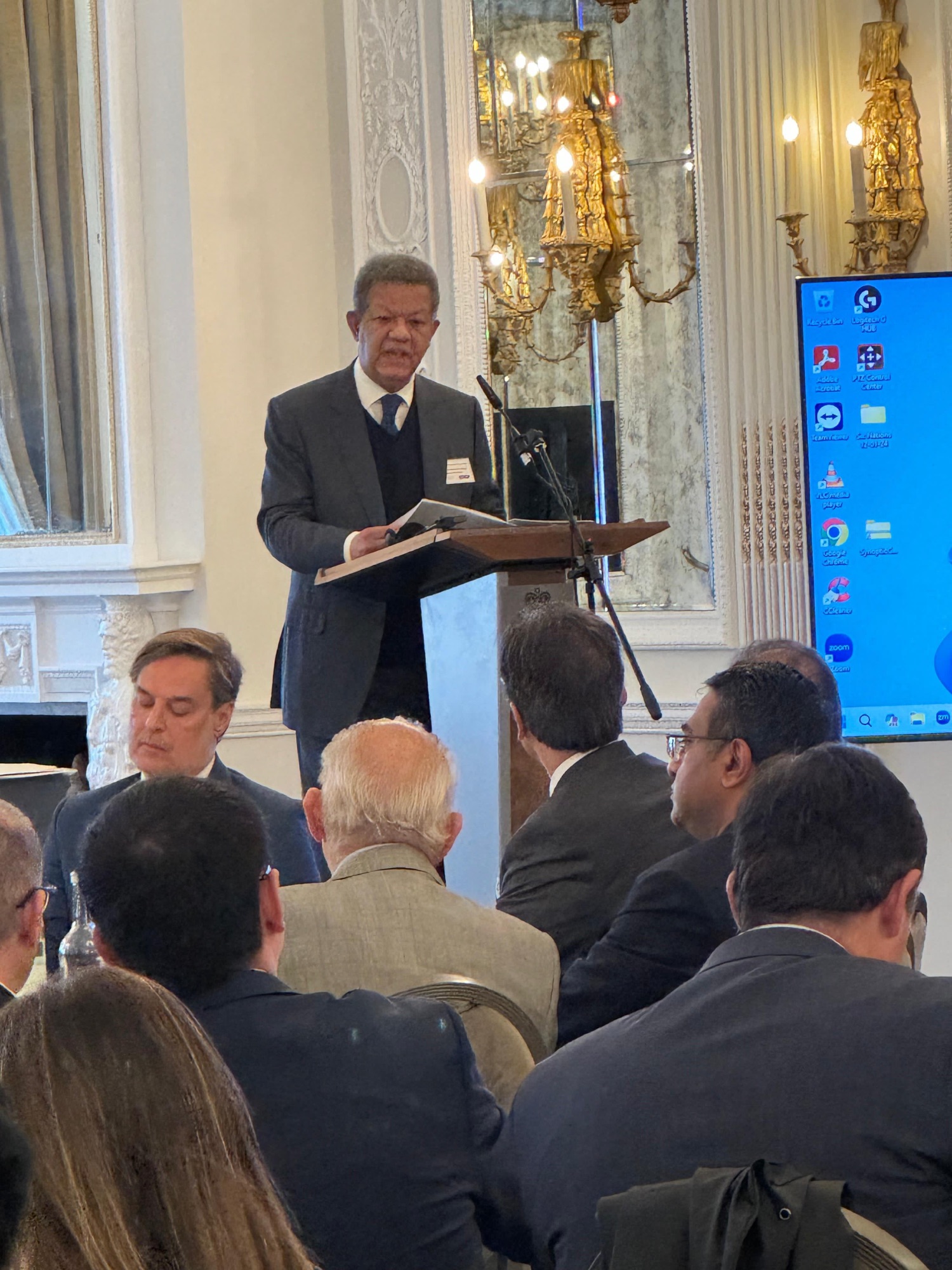 Londres, Reino Unido.- El expresidente dominicano Leonel Fernández se destacó como el orador principal en una conferencia clave sobre gobernanza, deuda y seguridad energética, organizada por la asociación de exembajadores The Ambassador Partnership y el buffet de consultores Dentons, celebrada este 10 de junio en el prestigioso Royal Automobile Club, en Londres.