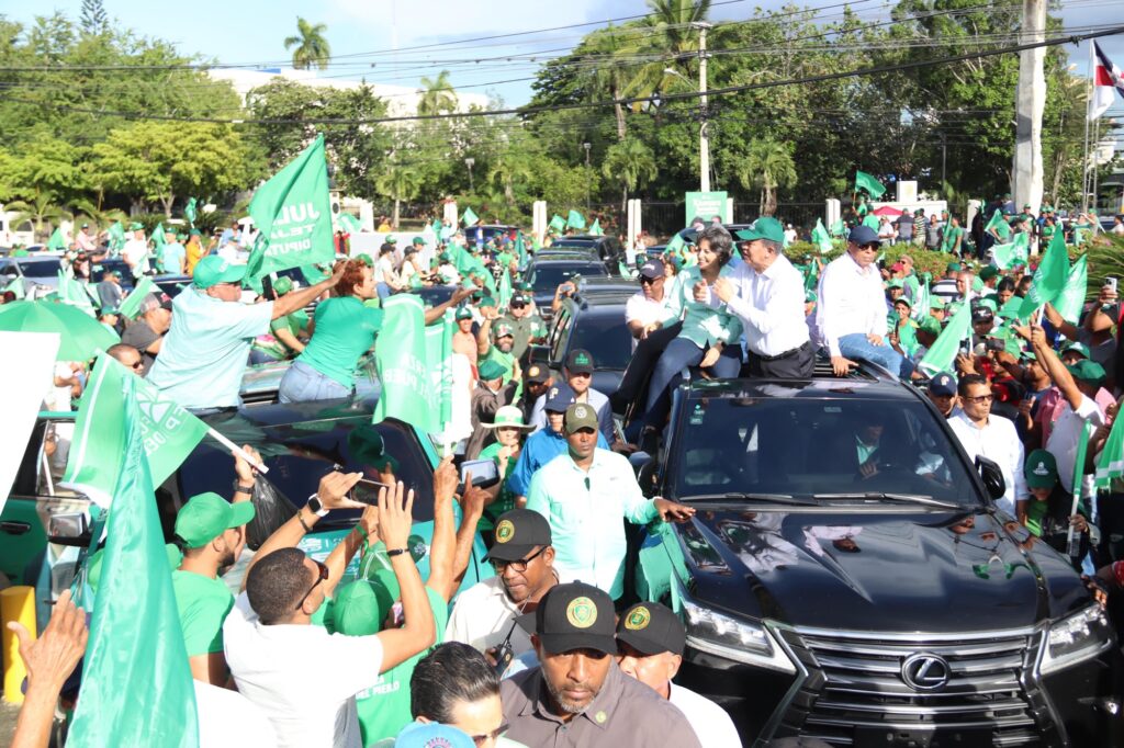 Durante todo el trayecto, se sentía la alegría de los ciudadanos, quienes exhibían todo tipo de atuendos verdes, expresaban su respaldo a la candidatura presidencial de Leonel Fernández y, de los candidatos congresuales opositores.