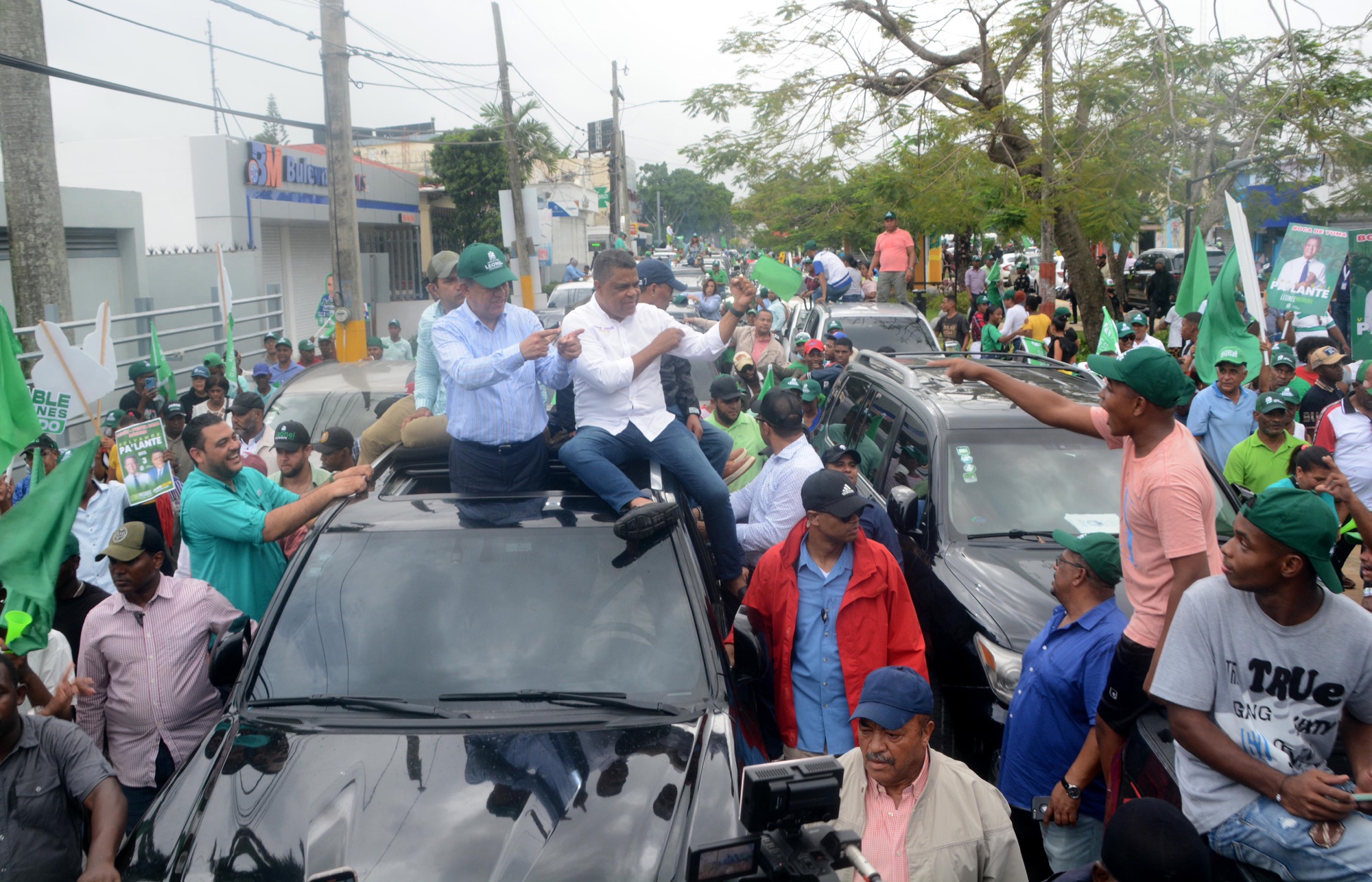 Cientos de personas a pie, motocicletas, bicicletas y otros vehículos y hasta en bicicleta recorrieron las calles de esta importante demarcación en respaldo a los candidatos del principal partido de la oposición dominicana.