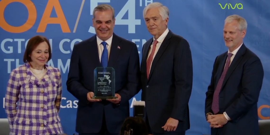 El jefe de Estado, Luis Abinader, recibió este miércoles el premio Presidente al Liderazgo en las Américas, por ser el líder dominicano que ha trabajado para promover la seguridad regional, apoyar la democracia y luchar contra la corrupción, desde que asumió la presidencia en 2020.
