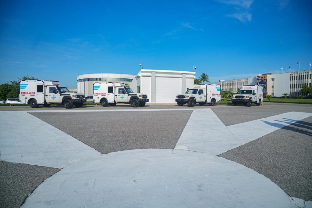 Santo Domingo.-El Ministerio de Defensa (MIDE), a través de la Industria Militar Dominicana (IMDOM), continúa consolidando su rol como motor de innovación, autosuficiencia y apoyo logístico del Estado dominicano, al hacer entrega de cuatro modernas ambulancias todo terreno al Cuerpo Especializado en Seguridad Aeroportuaria y de la Aviación Civil (CESAC), con el objetivo de reforzar las capacidades de respuesta ante emergencias médicas en los principales aeropuertos del país.