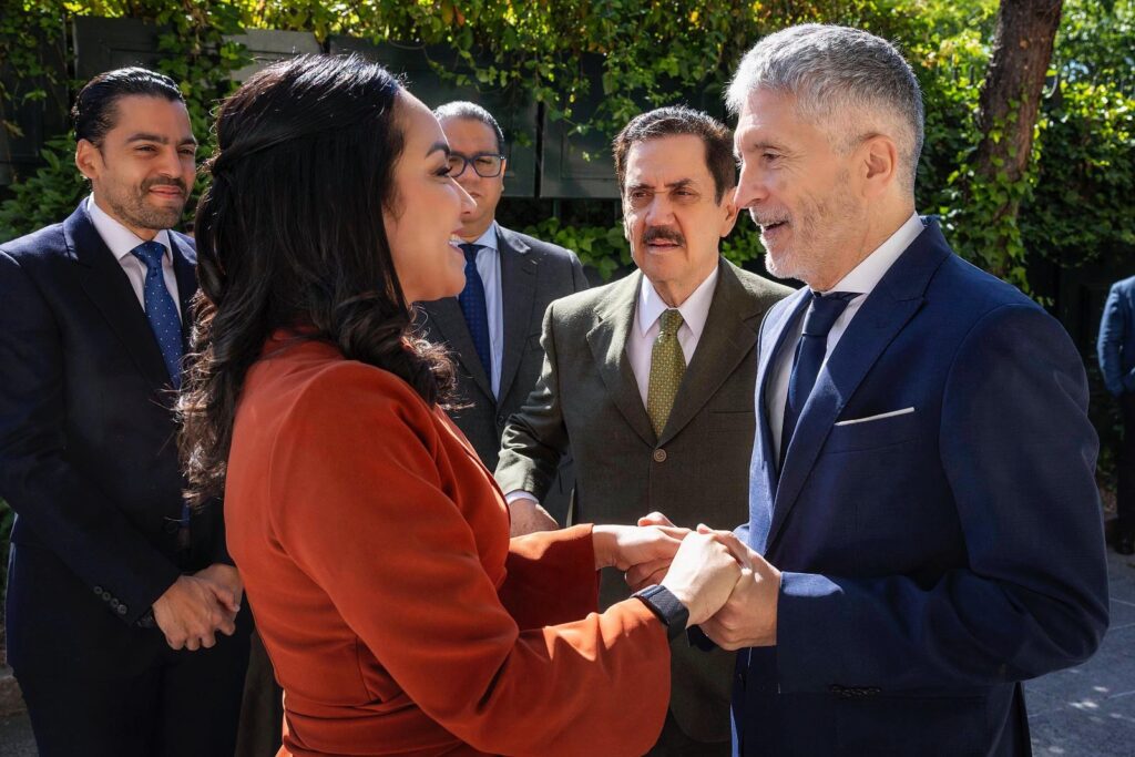 Madrid, España.-La ministra de Interior y Policía de la República Dominicana, Faride Raful, sostuvo este lunes un encuentro con su homólogo español, Fernando Grande-Marlaska, en el que abordaron estrategias de orden público, seguridad ciudadana y convivencia social.
