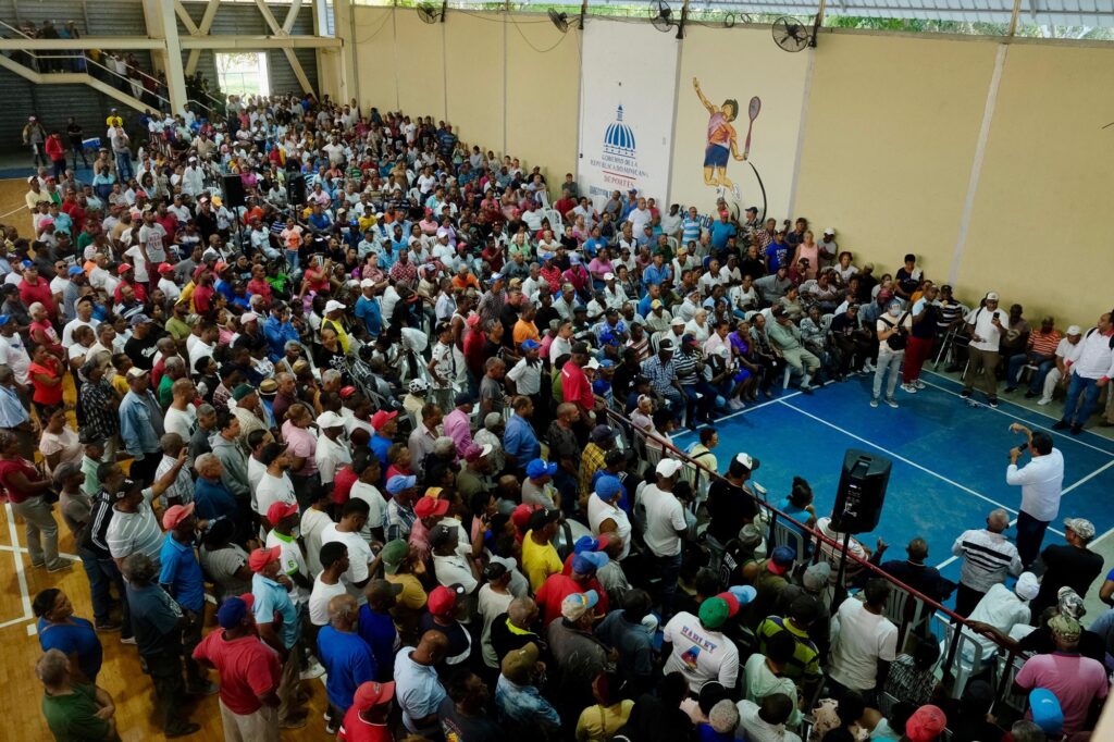AZUA.-El ministro de Trabajo, Eddy Olivares, tras encabezar un un acto celebrado en el polideportivo Bartolomé Olegario Pérez de Azua, al que asistieron cientos de trabajadores de los puertos y líderes comunitarios locales, aseguró que el Gobierno entregará el bono navideño completo y no permitirá los arbitrarios y abusivos descuentos que tradicionalmente le hacen algunos sindicatos.