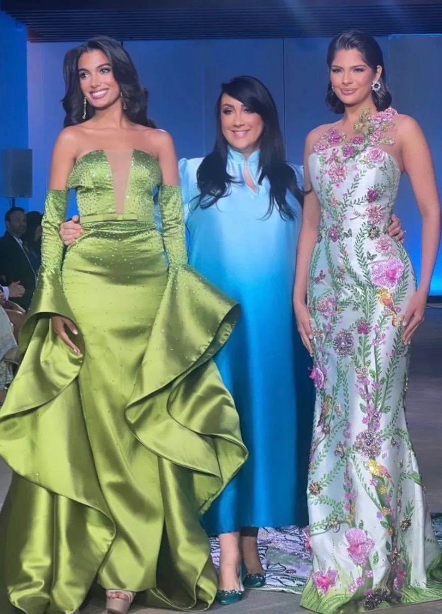 El desfile culminó con una elegante pasarela de Sheynnis Palacios, luciendo un traje de la colección “Garden” pintado a mano por Yan Páez, inspirado en el jardín de las camelias.