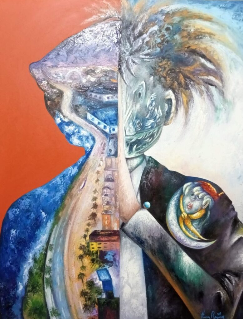 La obra de Reynoso se configura como un territorio de exploración profunda de lo humano. Su lenguaje visual —marcado por un subimpresionismo que articula elementos del surrealismo, el arte naif caribeño y el impresionismo— construye una narrativa donde las siluetas operan como dispositivos simbólicos para revelar estados internos, memorias y conflictos de la conciencia.