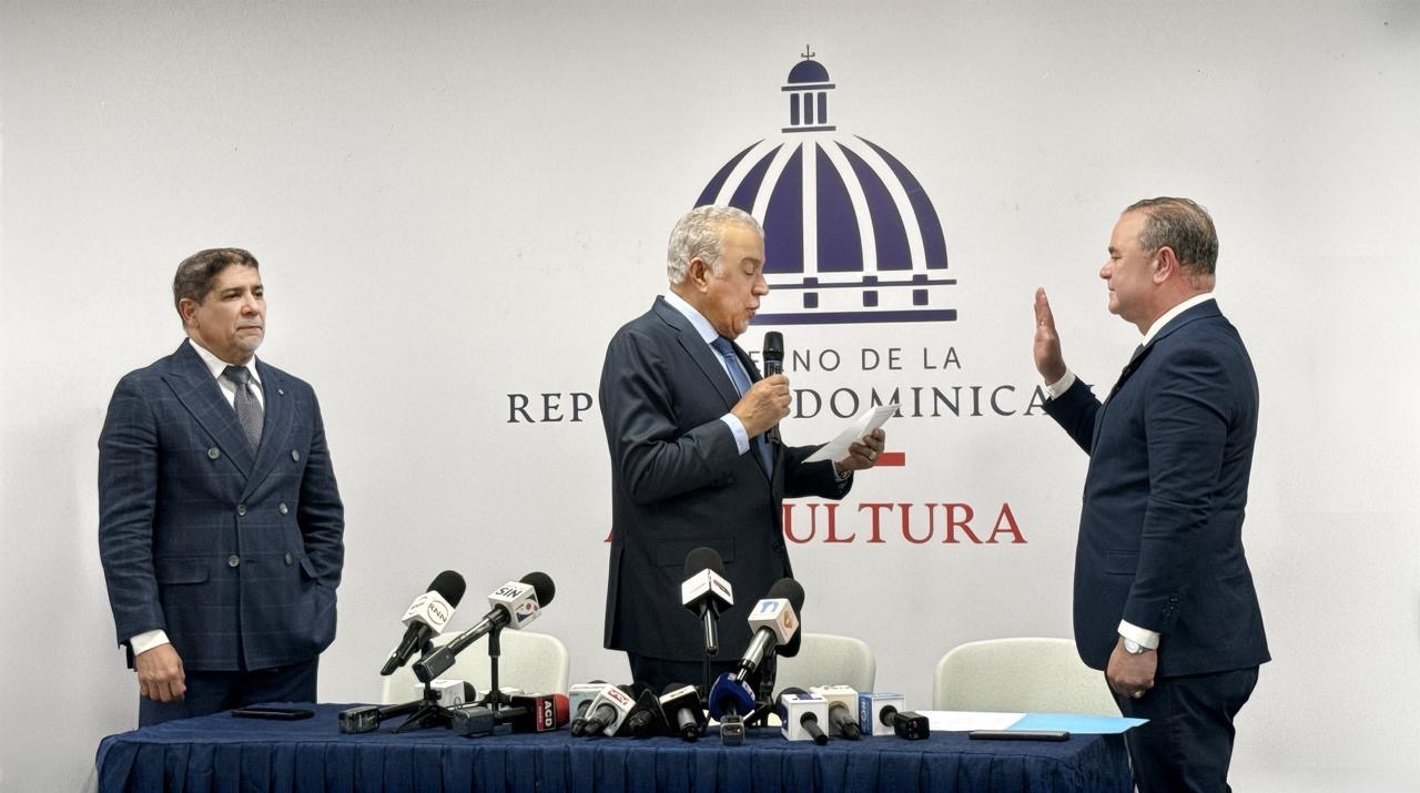 Andrés Bautista le toma el juramento como nuevo ministro.