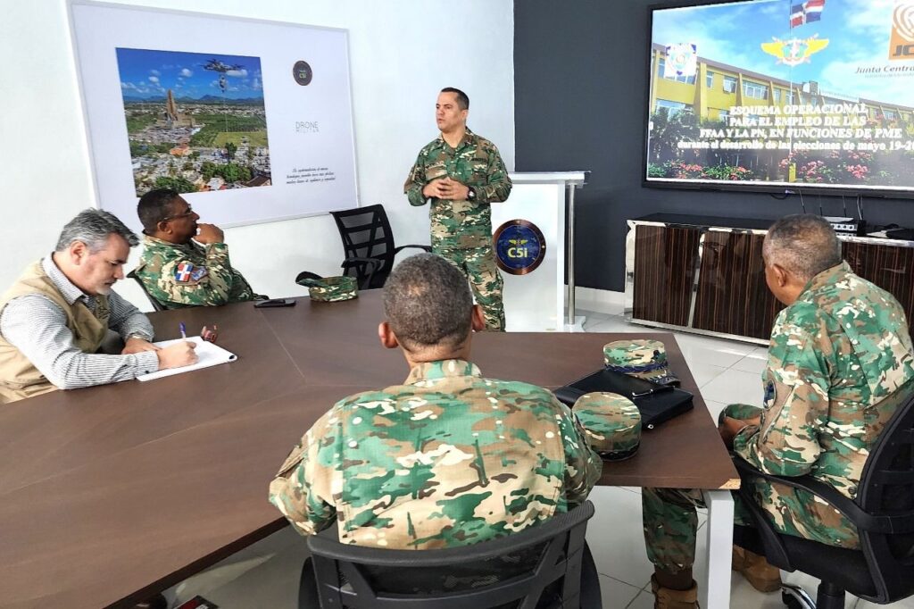 Observadores de la Organización de Estados Americanos (OEA), que se encuentran en el país para presenciar los próximos comicios, se reunieron con las autoridades de la Policía Militar Electoral (PME), para conocer el esquema operacional de seguridad aprobado por el pleno de la Junta Central Electoral y el Ministerio de Defensa, de cara a los próximos comicios presidenciales y congresuales, a realizarse este 19 de mayo.