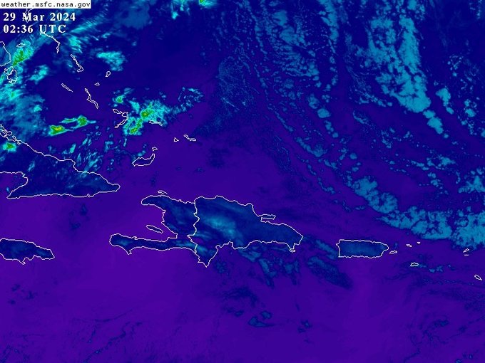 SANTO DOMINGO, RD- Hoy, Viernes Santo, el sistema de alta presión mantendrá condiciones desfavorables para desarrollos nubosos importantes, aun con la cercanía de una vaguada asociada a un sistema frontal, por lo que predominará un cielo despejado la mayor parte del día. Será durante la noche que, conforme se aproxime el sistema frontal hacia provincias del litoral atlántico, estará incrementándose la nubosidad y ocurrirán aguaceros localmente moderados a fuertes con tronadas y ráfagas de viento, especialmente hacia Monte Cristi, Puerto Plata, Dajabón, Espaillat, María Trinidad Sánchez, entre otras.