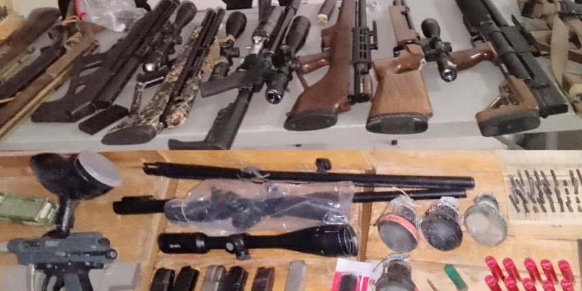BAHORUCO. — Durante un llamamiento, agentes policiales del Departamento de Inteligencia Delictiva (DINTEL) y de Prevención, en colaboración con el Ministerio Público, capturaron a un hombre con 11 armas de fuego y equipos militares, en el municipio de Neiba, provincia Bahoruco.