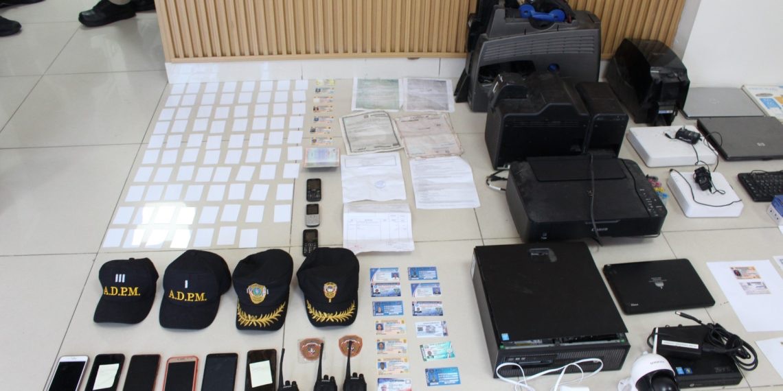 Asimismo, dentro de lo ocupado a esta estructura delictiva se encuentran cédulas de identidad y electoral, actas de nacimientos presumiblemente falso, carnets de distintas entidades públicas y privadas, computadoras laptops e impresoras, formularios, fotos, certificaciones y sentencias de la Junta Central Electoral, certificados de no antecedentes penales falsos, entre otros tipos de documentaciones.