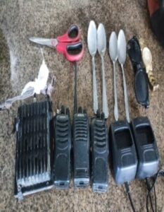 Durante el operativo fueron ocupados tres radios de comunicación, dos cargadores para radios, cuatro cucharas metálicas, una tijera, unas gafas, una luz LED y un reloj.