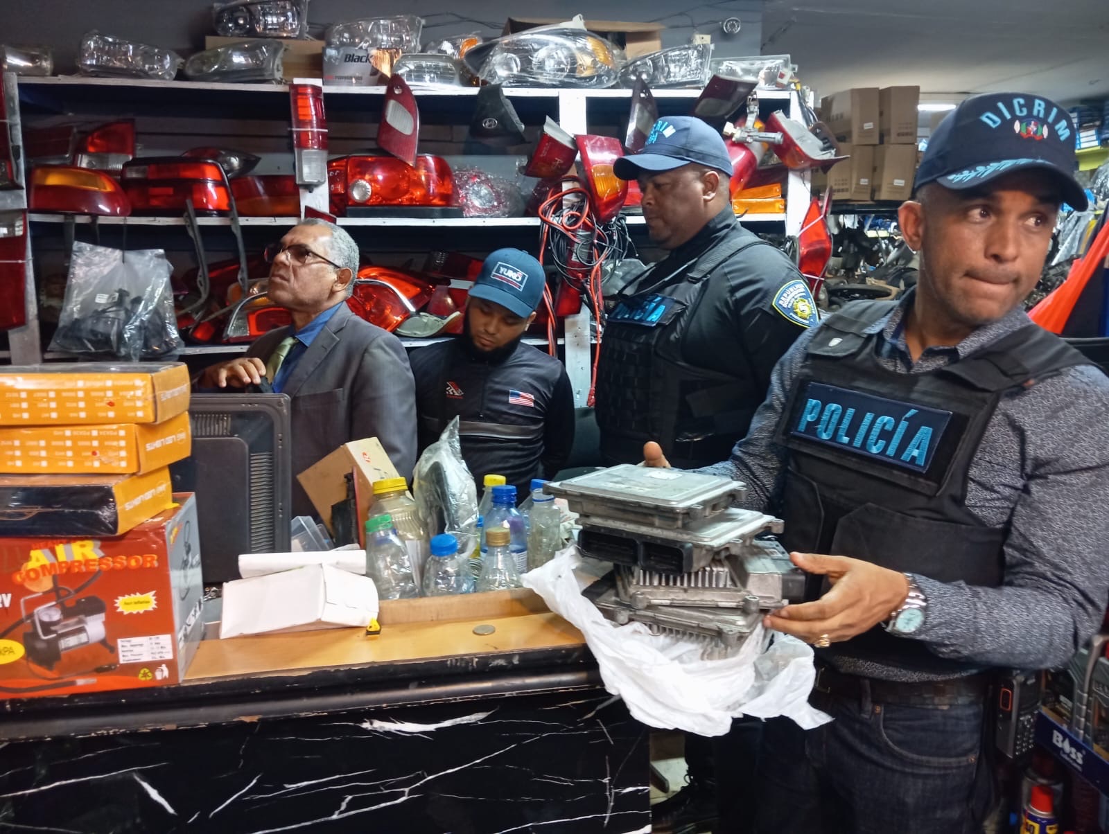 Santo Domingo,D.N.-La Policía Nacional, a través de la Subdirección Regional de Investigación Sur (Barahona), junto al Ministerio Público, desmanteló una estructura dedicada al robo y comercialización ilícita de computadoras, radios y otras piezas electrónicas para vehículos, logrando la incautación de 130 evidencias y la detención de tres presuntos integrantes, durante un allanamiento realizado en un repuesto del sector Villa Agrícola, Distrito Nacional.