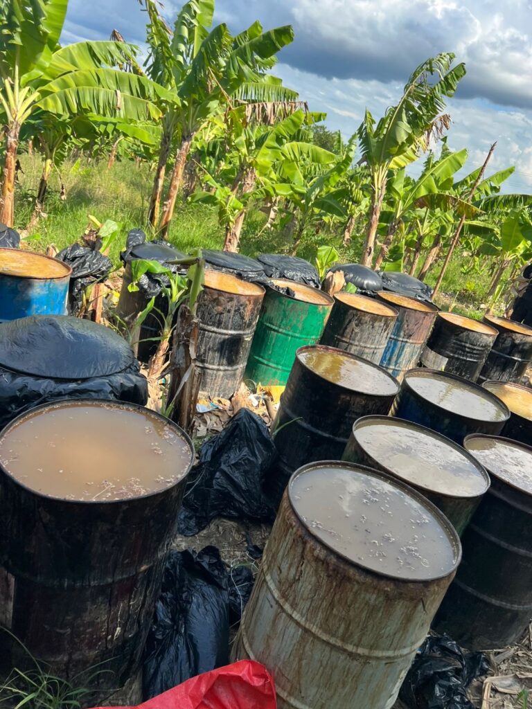 Agentes de la Subdirección Regional Cibao Central de Inteligencia (DINTEL), en coordinación con el equipo SWAT, la Policía Preventiva, el Cuerpo Especializado de Control de Combustibles (CECCOM) y el Ministerio Público, desmantelaron un laboratorio clandestino de fabricación de clerén en el sector Pontón del municipio de Navarrete, provincia Santiago, donde resultaron detenidos dos nacionales haitianos sorprendidos en flagrante delito.