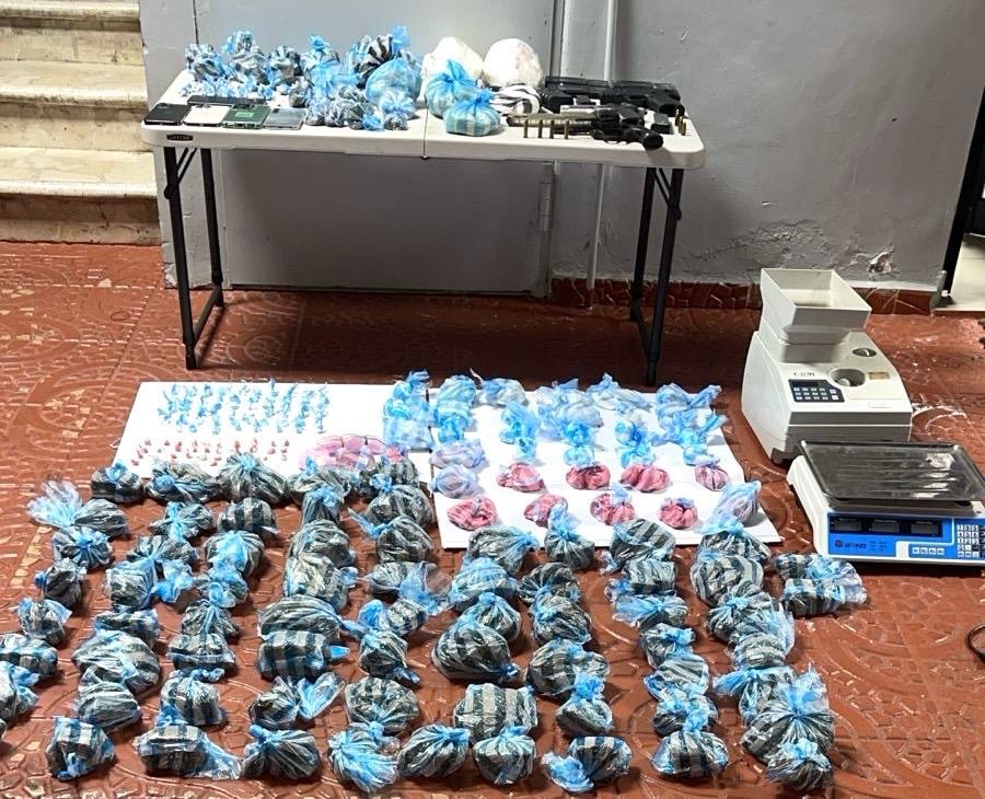También se incautaron cuatro balanzas, un peso digital, una máquina de contar monedas, dos armas de fuego, un arma no letal, una pistola de juguete y cinco celulares de diferentes marcas y modelos.