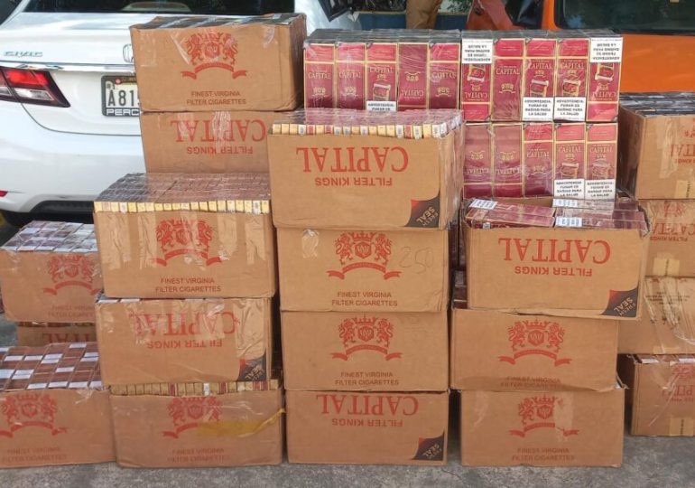 Durante el operativo, realizado frente a su residencia, en el sector Brisas del Este, las autoridades incautaron 60 cajas que contenían un total de 8,069 cajetillas de cigarrillos, lo que equivale a 161,380 unidades.