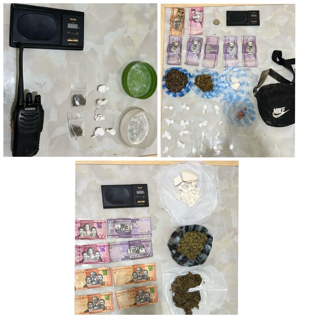 Moca, provincia Espaillat.-Agentes de la Policía Nacional, a través de la Subdirección de Inteligencia (DINTEL) y en coordinación con el J-2, intervinieron tres puntos de distribución de drogas en distintos sectores de la provincia Espaillat, logrando el arresto de siete personas y la incautación de diversas sustancias controladas, dinero en efectivo y otros objetos.