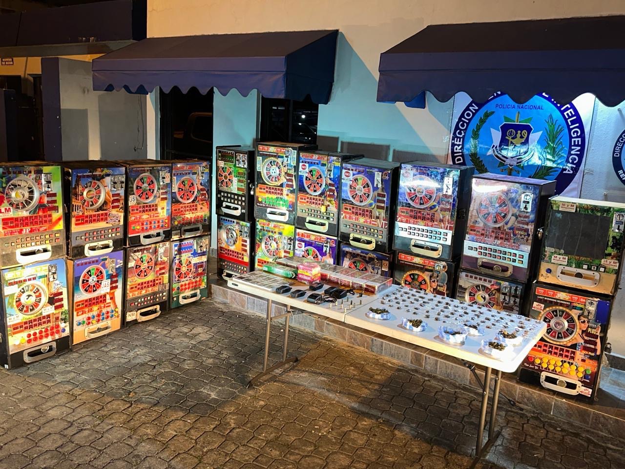Agentes de la Dirección Central de Inteligencia (DINTEL) de la Policía Nacional incautaron 92 porciones de presunta marihuana, 22 máquinas tragamonedas ilegales, 2,134 cigarrillos, 10 cápsulas calibre 9mm y tres radios de comunicación en operativos focalizados realizados en Santo Domingo Norte, específicamente en los sectores Villa Mella y Sabana Perdida.