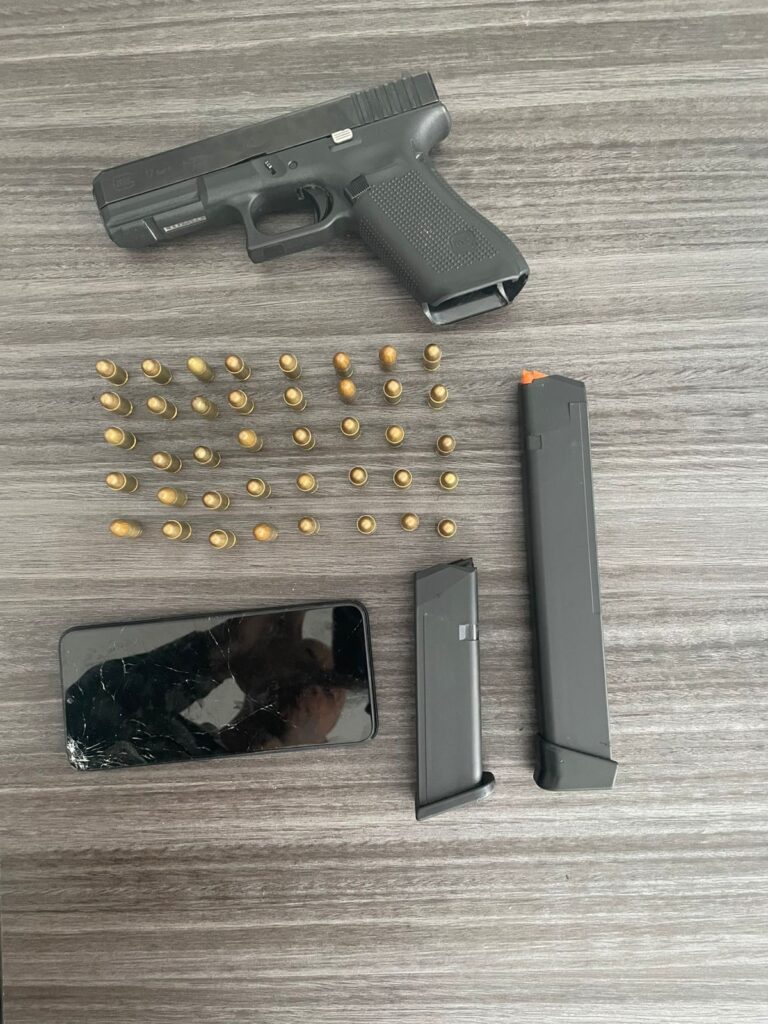 En el sector Barrio Nuevo de Sabana Perdida, agentes policiales detuvieron a Freddy Ramírez Cuevas, a quien se le ocupó una pistola marca Glock que portaba de manera ilegal. Además, fue retenida la motocicleta en la que se desplazaba de forma sospechosa.