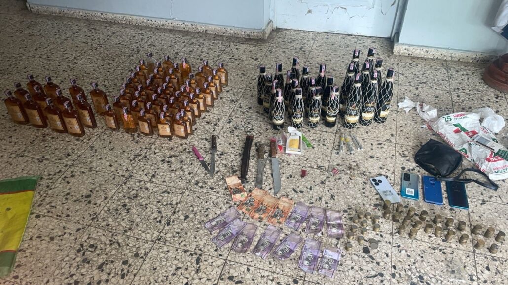 Los agentes recuperaron más de 40 botellas de alcohol, varios celulares, dinero en efectivo y otros objetos.
