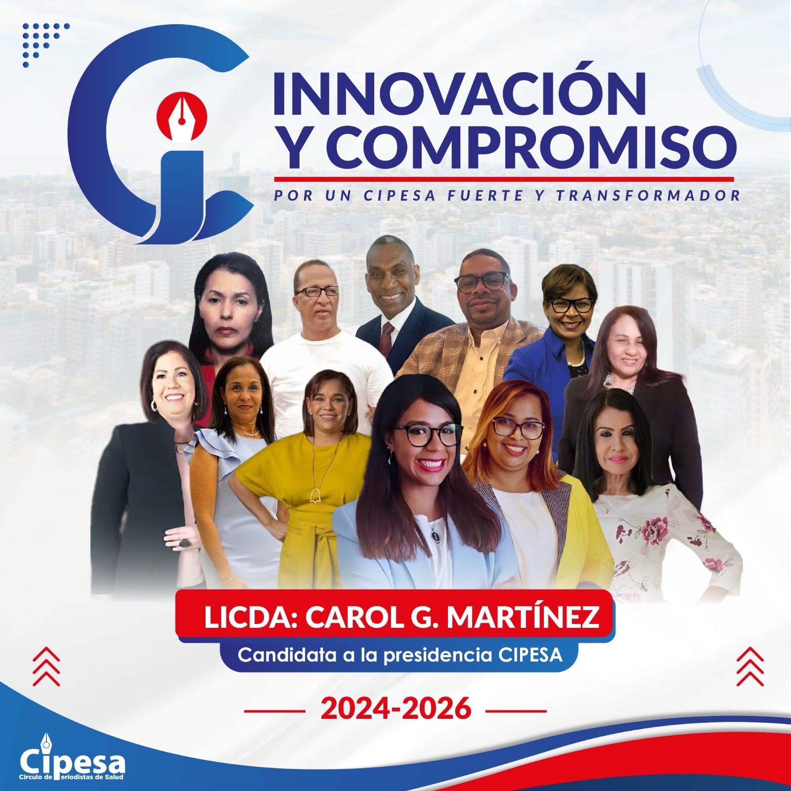 Santo Domingo – Un destacado grupo de profesionales de la comunicación especializada en temas de salud presentó la plancha «Innovación y Compromiso» para las próximas elecciones del Círculo de Periodistas de la Salud (CIPESA), que se llevarán a cabo el 5 de octubre del presente año. Este equipo está decidido a transformar y fortalecer CIPESA, promoviendo un enfoque innovador y un firme compromiso con la excelencia en la difusión de información sobre salud.