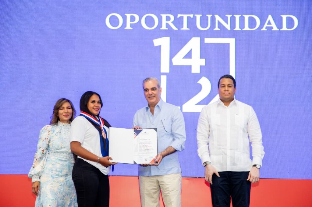 Santo Domingo.– Continuando con el compromiso de impulsar la capacitación de la juventud en situación de vulnerabilidad, el presidente Luis Abinader encabezó este sábado la duodécima graduación del programa Oportunidad 14-24, correspondiente al grupo julio–diciembre de 2025, integrado por jóvenes pertenecientes a 59 centros ubicados en las regionales Metropolitana, Oriental, Valdesia y Este, con cobertura en 10 provincias y el Distrito Nacional.