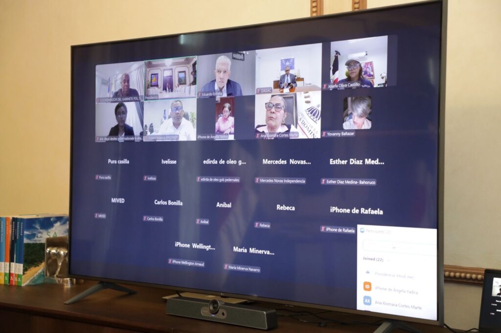 De forma virtual participaron también los ministros de Obras Públicas y Comunicaciones, Eduardo Estrella, y de Vivienda y Edificaciones, Carlos Bonilla; también, los directores de Asistencia Social y Alimentación Comunitaria (DASAC), antiguo Plan Social, Édgar Féliz; del Gabinete de Políticas Sociales, Tony Peña Guaba; y de Proyectos Estratégicos y Especiales de la Presidencia (Propeep), Robert Polanco.