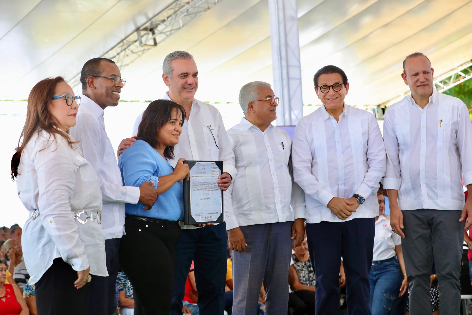 Dando continuidad a ese plan, el mandatario encabezó la entrega de 537 títulos de propiedad a residentes en la Yaguita de Pastor, Santiago