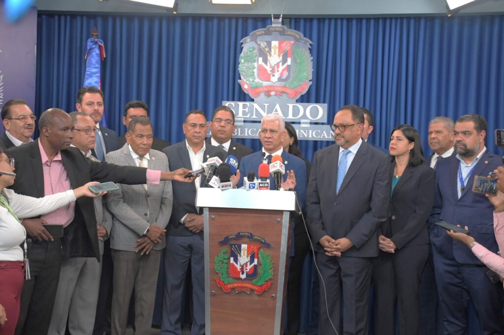 El presidente del Senado, Ricardo de los Santos se hizo acompañar de los senadores Lía Diaz Santana (Azua); el vocero del PRM, Cristóbal Castillo (Hato Mayor); Moisés Ayala Pérez (Barahona); María Mercedes Ortiz (Hermanas Mirabal); Dagoberto Rodríguez Adames (Independencia); Rafael Barón Duluc (La Altagracia); Pedro Antonio Tineo (Monte Plata); Secundino Velázquez (Pedernales); y Aneudy Ortiz (San José de Ocoa).