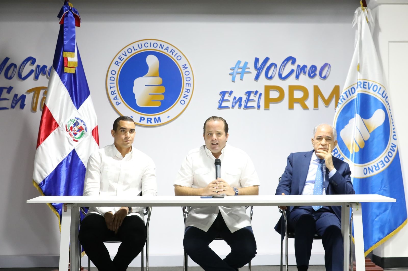 El presidente del PRM, José Ignacio Paliza, junto al secretario de Relaciones Internacionales, José Julio Gómez, y el secretario de Cooperación de Cooperación Internacional, Fausto Liz, destacó que entre los invitados de 38 países están 9 expresidentes, así como exvicepresidentes y exministros de relaciones internacionales.