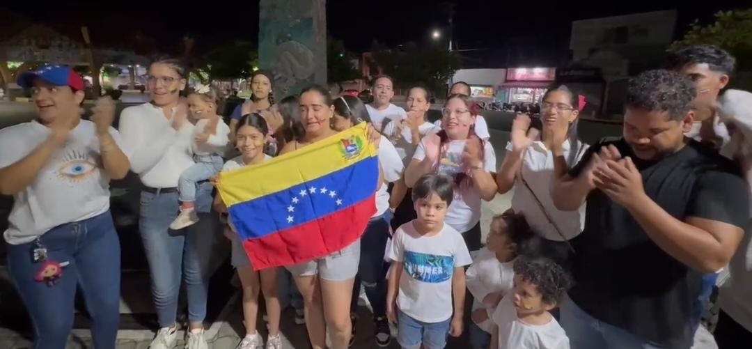 Cotuí, 29 de julio de 2024 – Esta noche, un grupo de venezolanos residentes en Cotuí se reunió en el parque Duarte para expresar su rechazo a la reciente reelección de Nicolás Maduro como presidente de Venezuela. Aunque el número de participantes fue limitado, la protesta se destacó por su fervor y el uso de la bandera venezolana y cantos para manifestar su descontento.