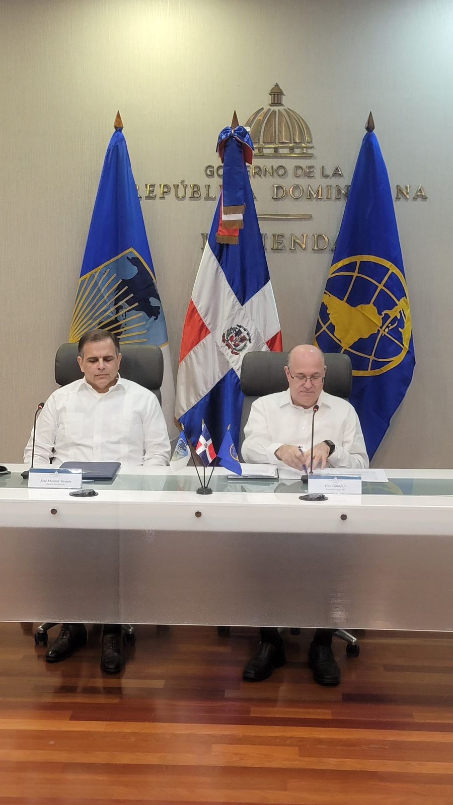 Santo Domingo.- El ministro de Hacienda, Jochi Vicente y el presidente del Grupo BID, Ilan Goldfajn, aseguraron que ya todo está listo para iniciar las asambleas de los Los 48 países miembros del BID se reúnen en las Reuniones Anuales 2024 de las Asambleas de Gobernadores.