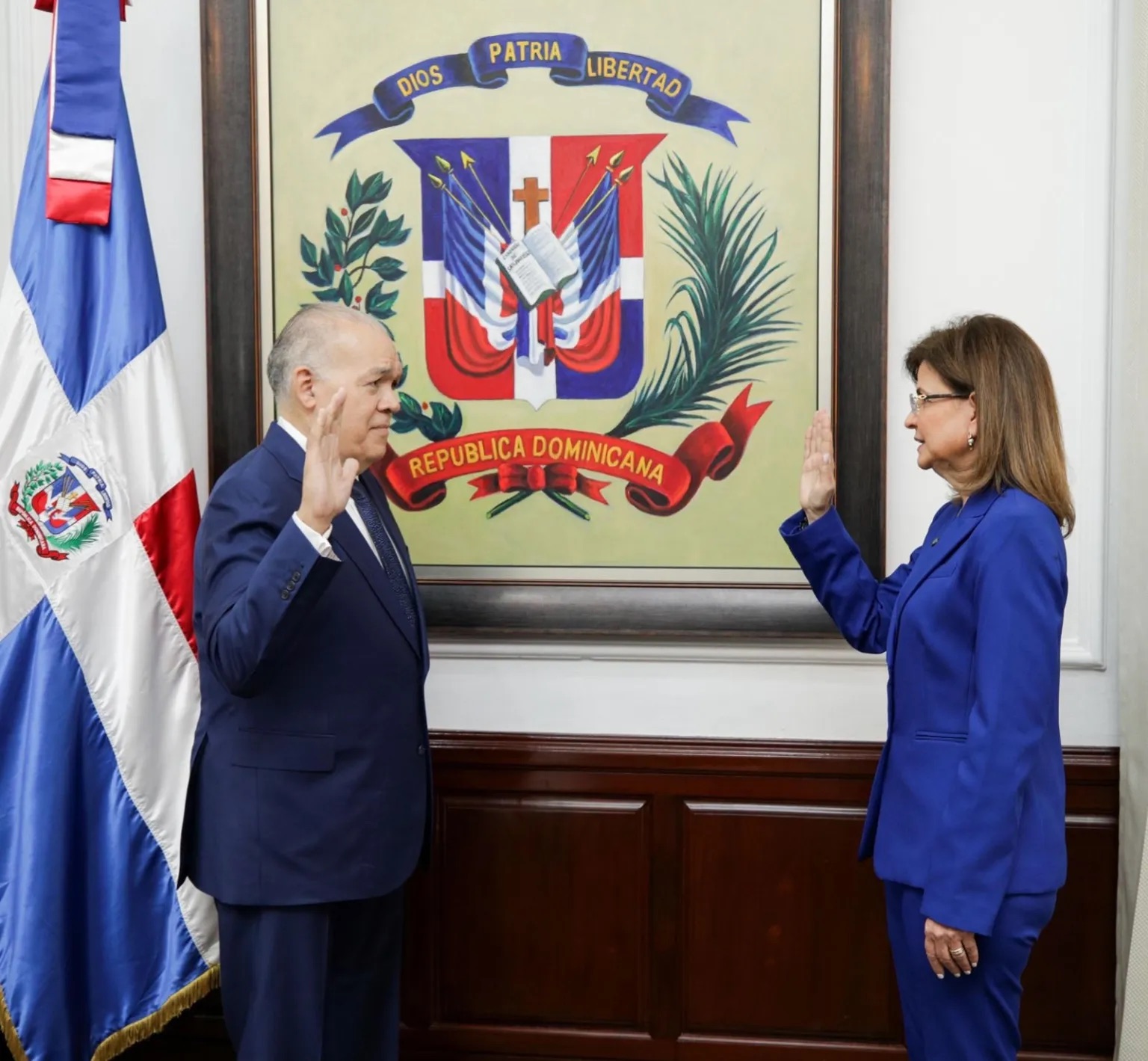 Por disposición del presidente Luis Abinader, la vicepresidenta encabezó el acto de juramentación en el Palacio Nacional.