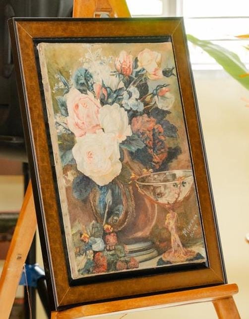 La obra, titulada “Bodegón”, realizada por Minerva Mirabal en 1949 y regalada por su autora a una amiga de infancia, viajó a Madrid y posteriormente a Nueva York, para luego regresar a Santiago durante la pandemia del COVID-19 en 2020. Más adelante fue localizada por amigos de la familia Mirabal y adquirida por Pereyra para su restauración y posterior donación al museo.