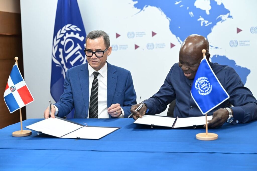Santo Domingo.-En el marco de la 20ª Reunión Regional Americana de la Organización Internacional del Trabajo (OIT), celebrada en Punta Cana, el ministro de Trabajo de la República Dominicana, Eddy Olivares, entregó en nombre del Gobierno dominicano, al director general del organismo, Gilbert Houngbo, el instrumento de ratificación del Convenio 156 de la OIT, sobre los trabajadores con responsabilidades familiares.