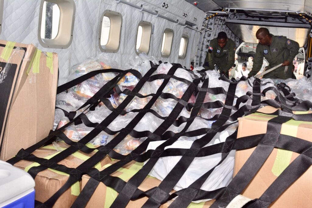 • Un avión de transporte de la Fuerza Aérea de República Dominicana, encargado del envío inicial de alimentos y medicamentos esenciales.
