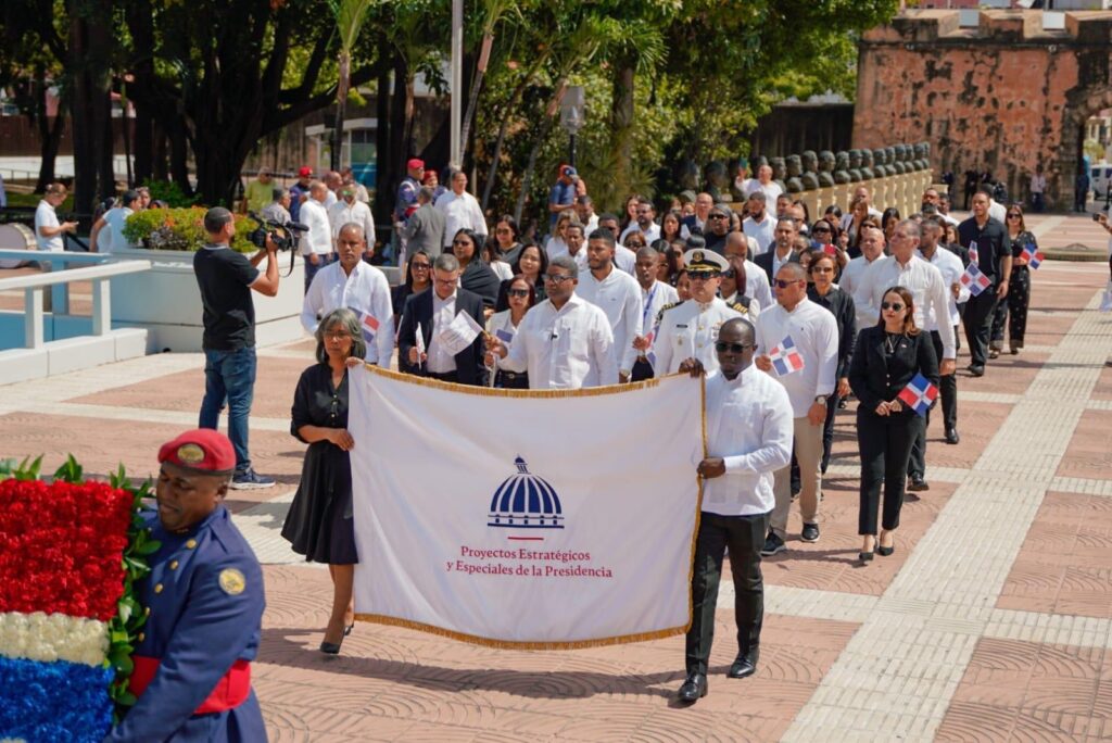 Al solemne acto asistieron funcionario de Propeep, que ofrendaron pétalos de rosas blancas, como muestras de reconocimiento y exaltación de los héroes independentistas, cuyo legado debe guiar las acciones presentes y futuras del Estado dominicano.