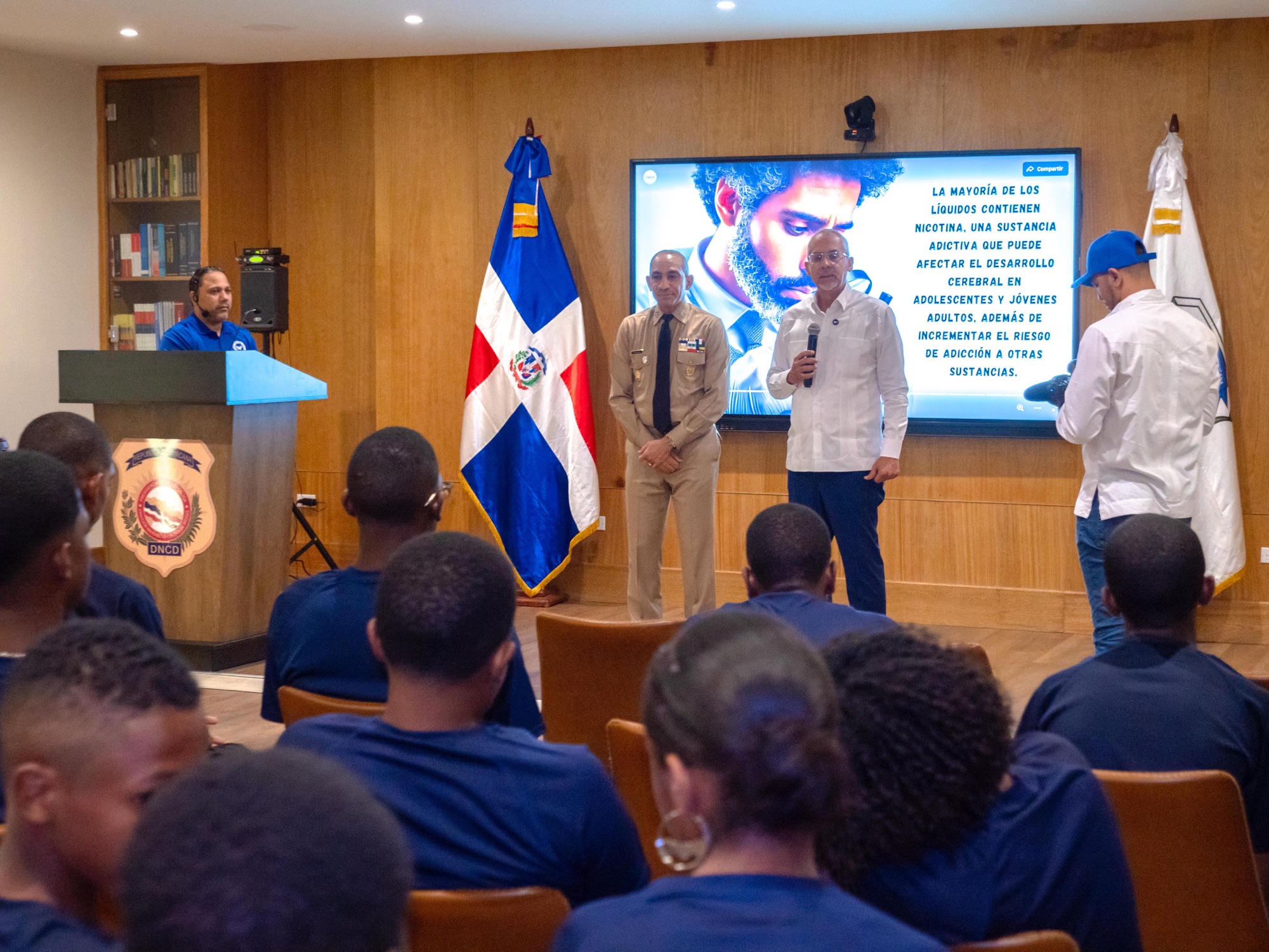 “Me siento sumamente orgulloso de recibirles aquí en la DNCD y quiero que sepan que este programa tiene la intención de abarcar todas las escuelas del país, como una forma de orientar de manera directa a cada estudiante del país sobre el terrible daño de las drogas”.